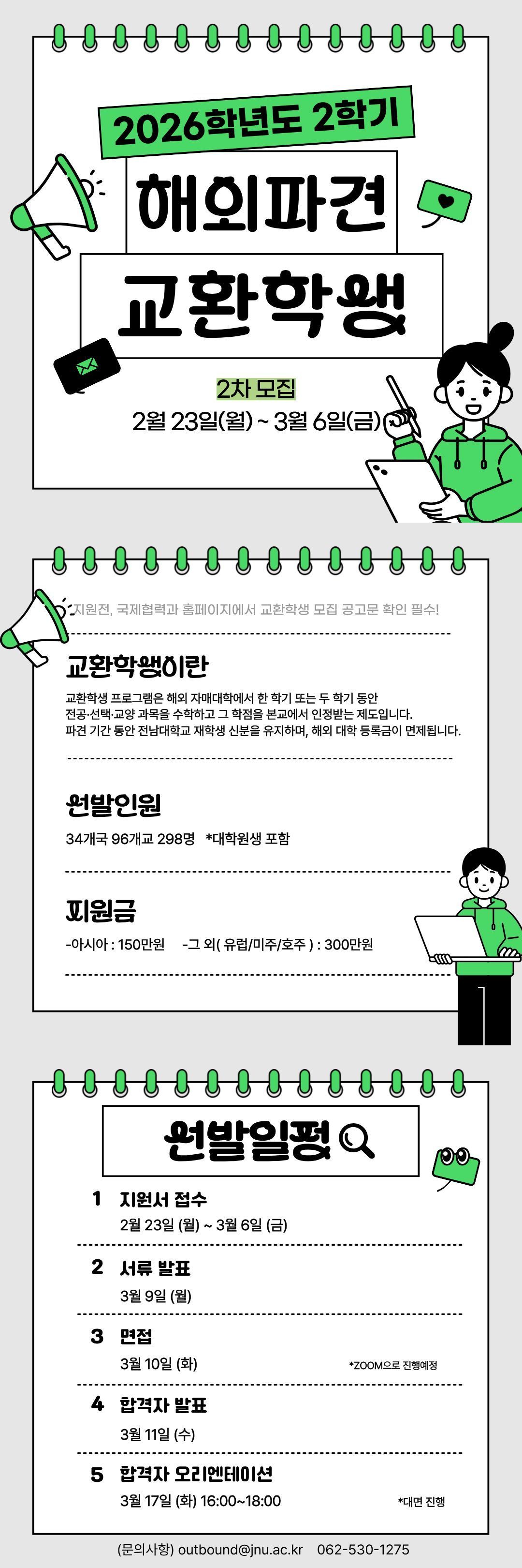 1. 관련: 국제협력과-1639(2026.02.27.) 「2026학년도 2학기 해외 파견 교환학생 2차 선발 홍보 요청」